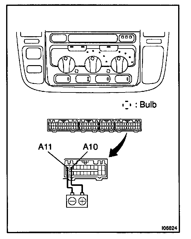 a. Connect the positive (+) lead from the battery to terminal A-10 and negative (-) lead to terminal A-11 then check that the illuminations lights up.