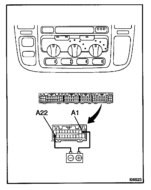 a. Connect the positive (+) lead from the battery to terminal A-1 and negative (-) lead to terminal A-22.