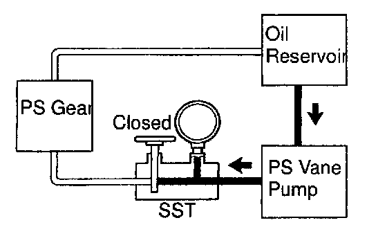 g. With the engine idling, close the valve of the SST and observe the reading on the SST