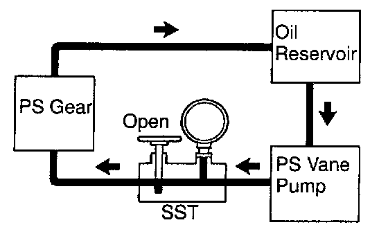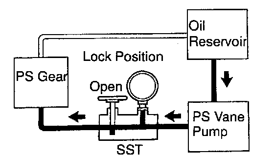 j. With the engine idling and valve fully opened, turn the steering wheel to full lock.