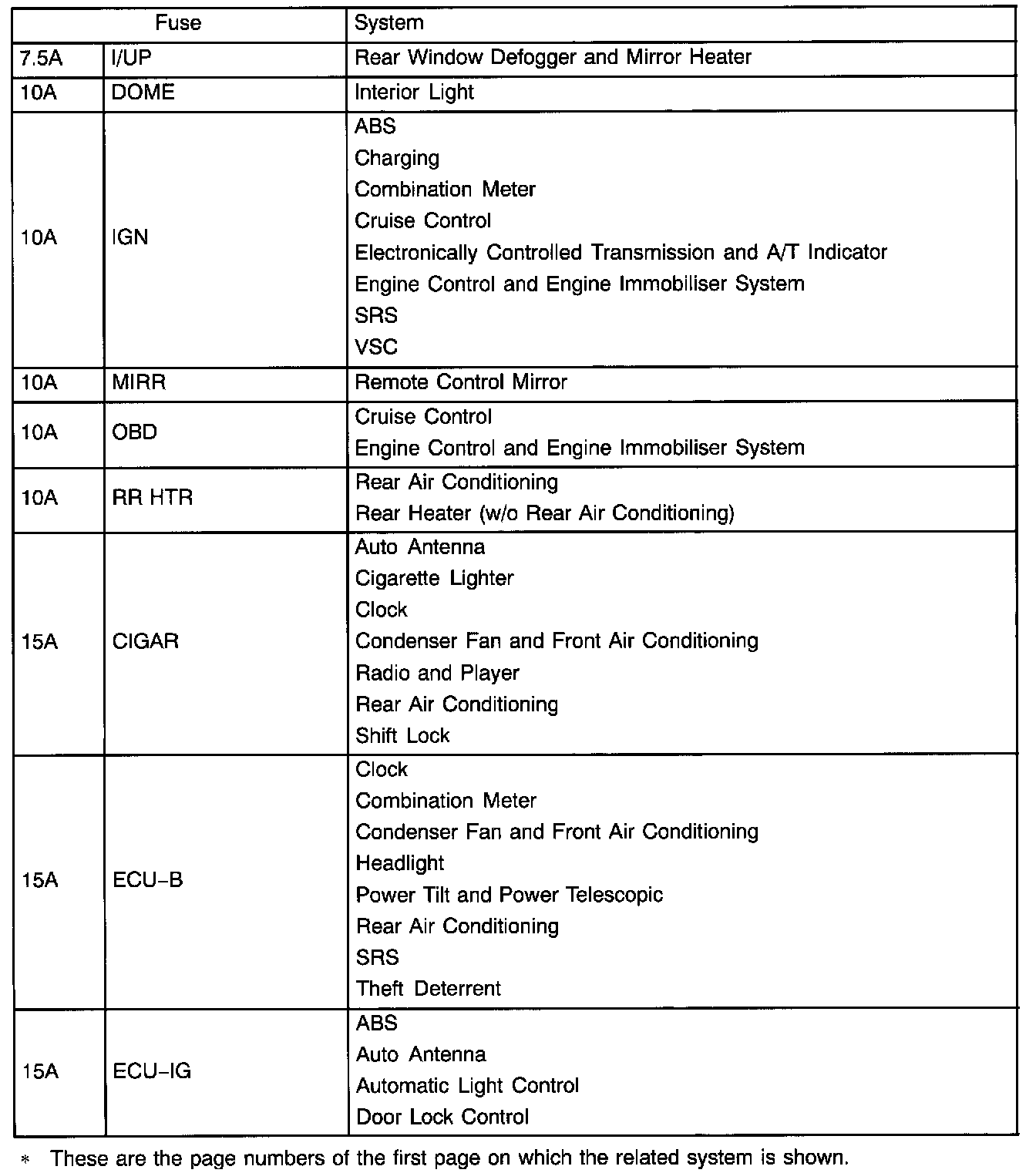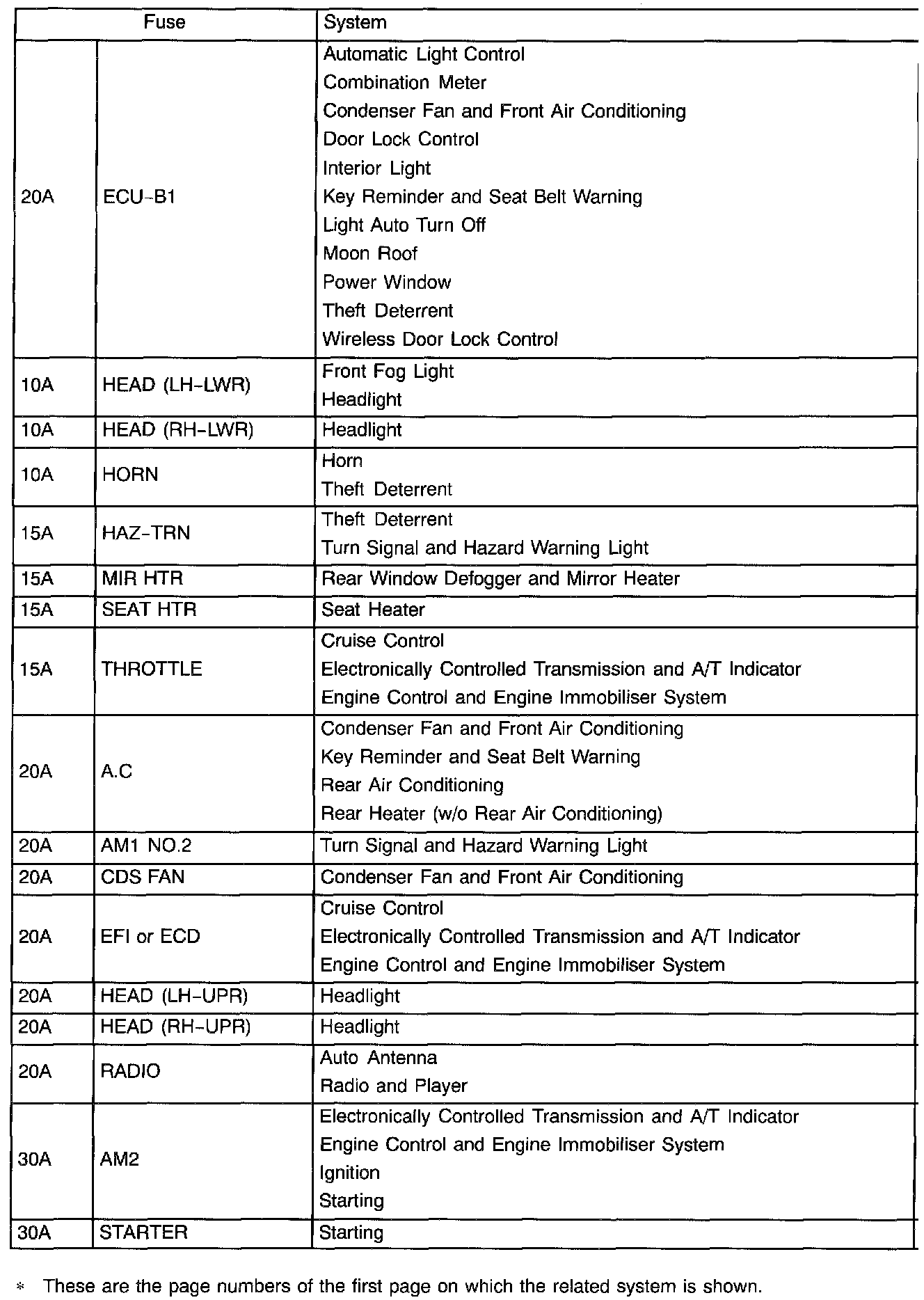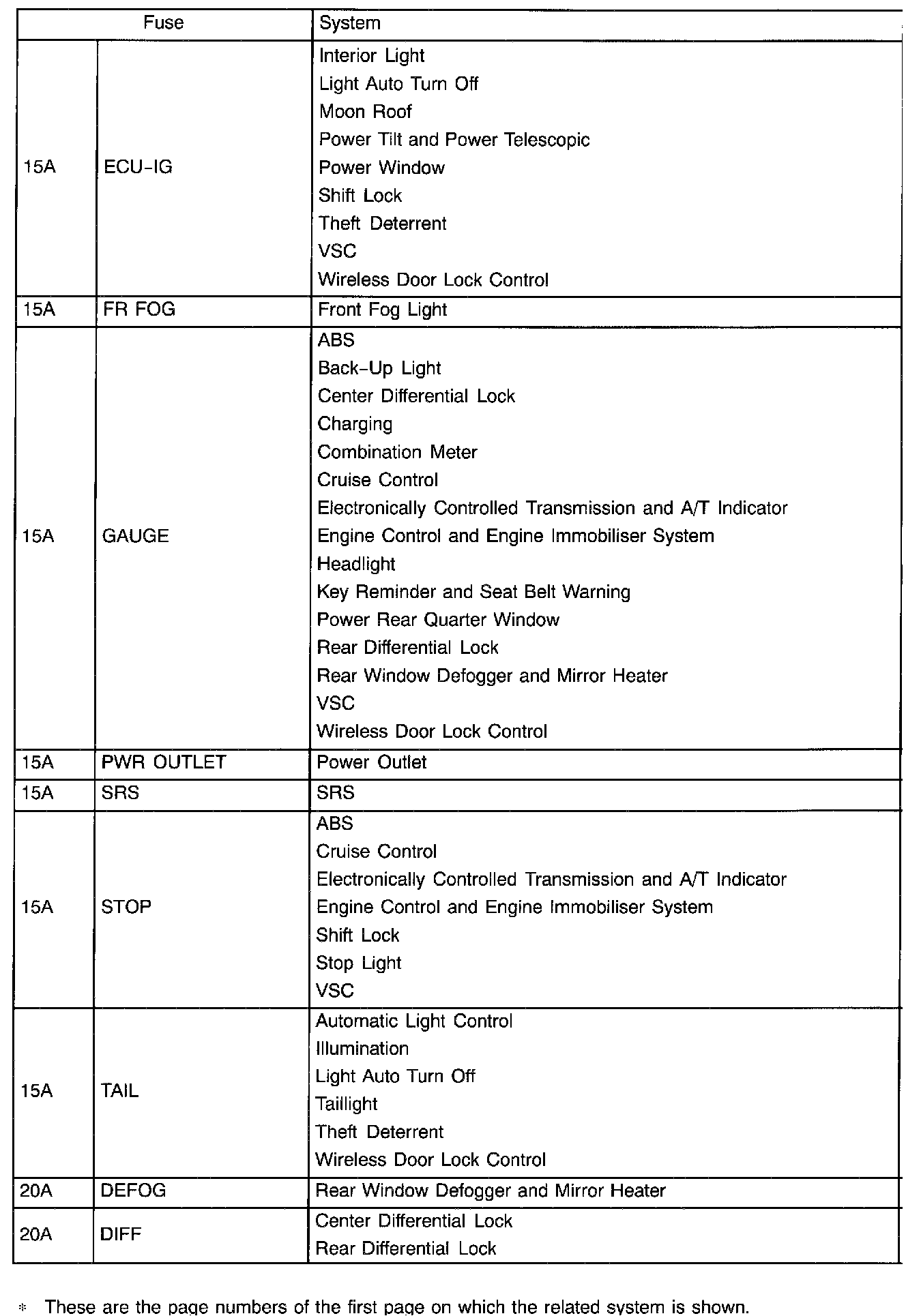 Engine Room Fuse Details