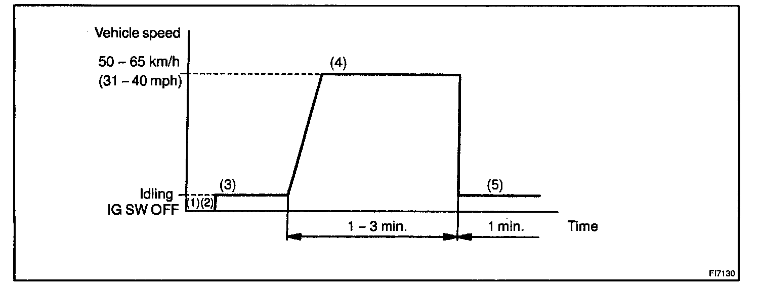 4. Drive the vehicle at 50 - 65 KPH (31 - 40 MPH) for 1 - 3 min. to warm up the heated oxygen sensor.
