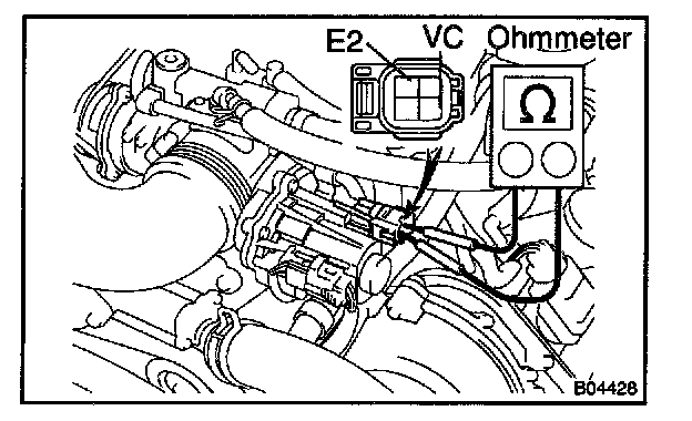 b. Using an ohmmeter, measure the resistance between terminals VC and E2.
