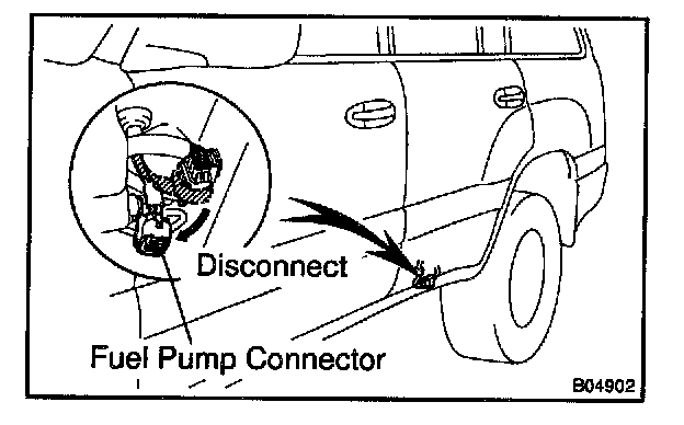 5. If you have no TOYOTA hand-held tester, connect the positive (+) and negative (-) leads from the battery to the fuel pump connector.