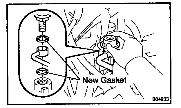 1. Apply a light coat of engine oil to the flare nut, and tighten the flare nut by hand.