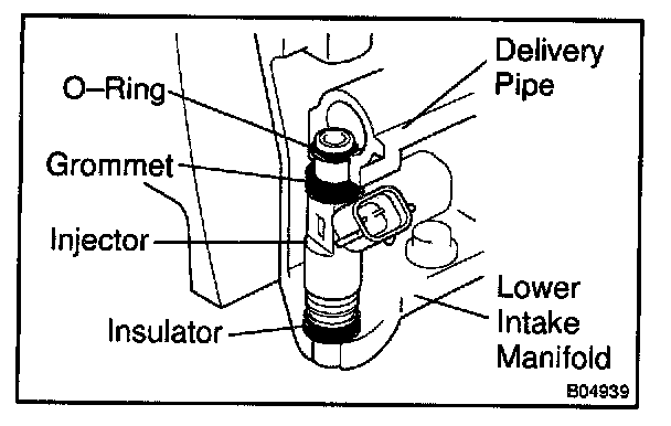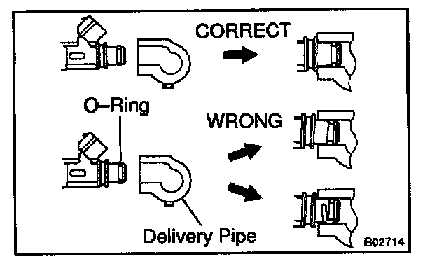 Before installing the injector, must apply spindle oil or gasoline on the place where a delivery pipe or an intake manifold touches an O-ring of the injector.