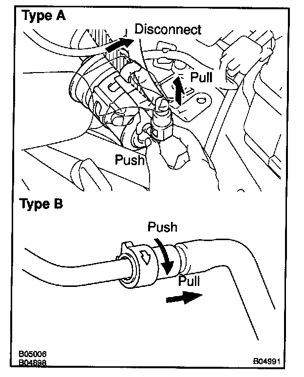 f. Observe these precautions when disconnecting the fuel tube connector (quick type):