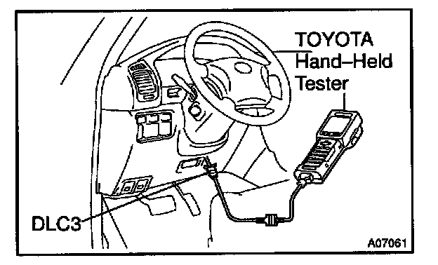 1. Connect a TOYOTA hand-held tester to the DLC3.