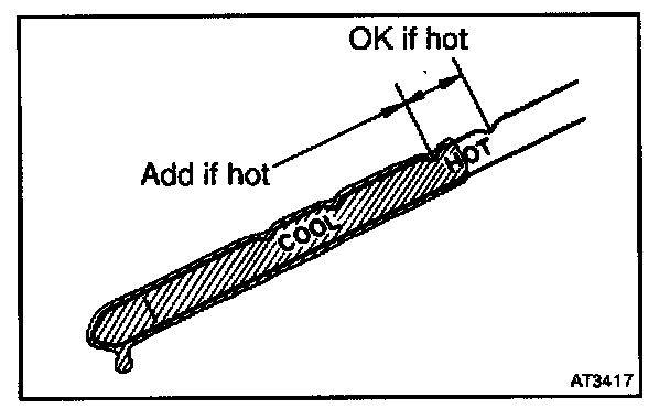- Only use the COOL range on the dipstick as a rough reference when the fluid is replaced or the engine does not run.