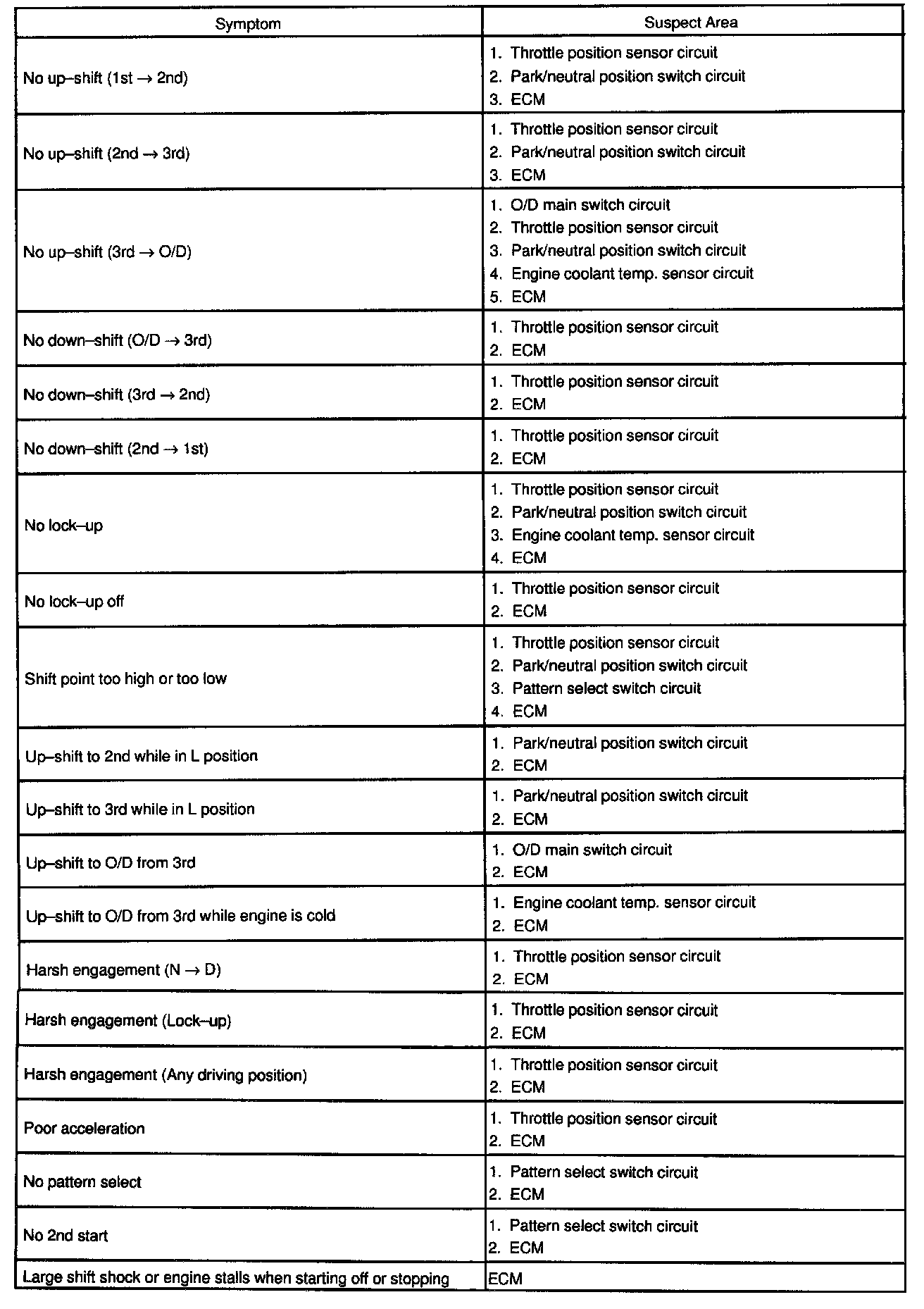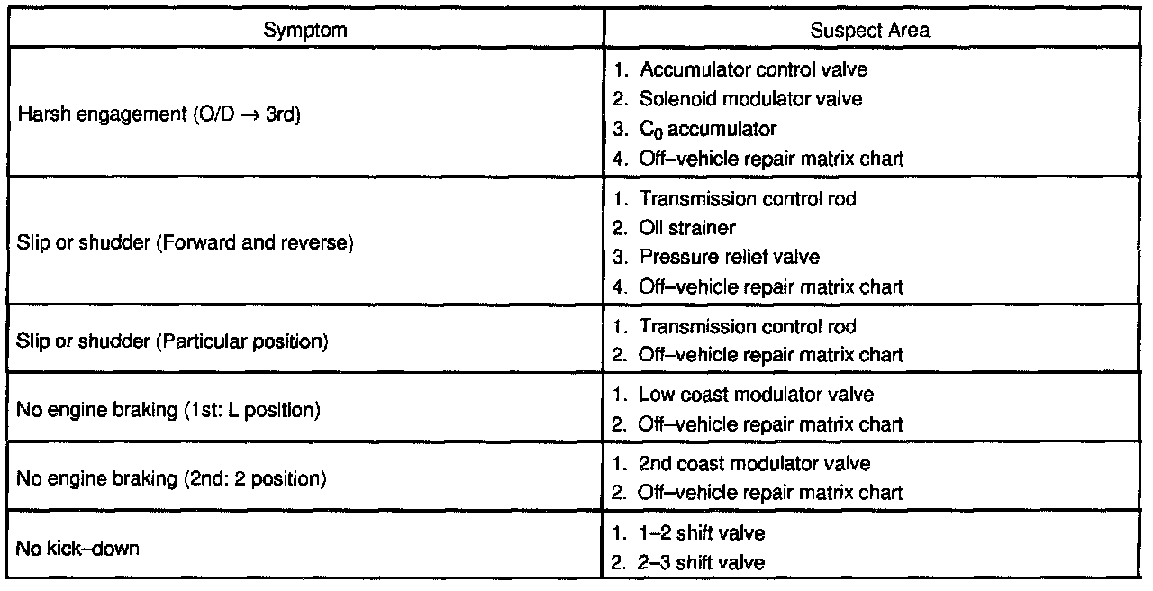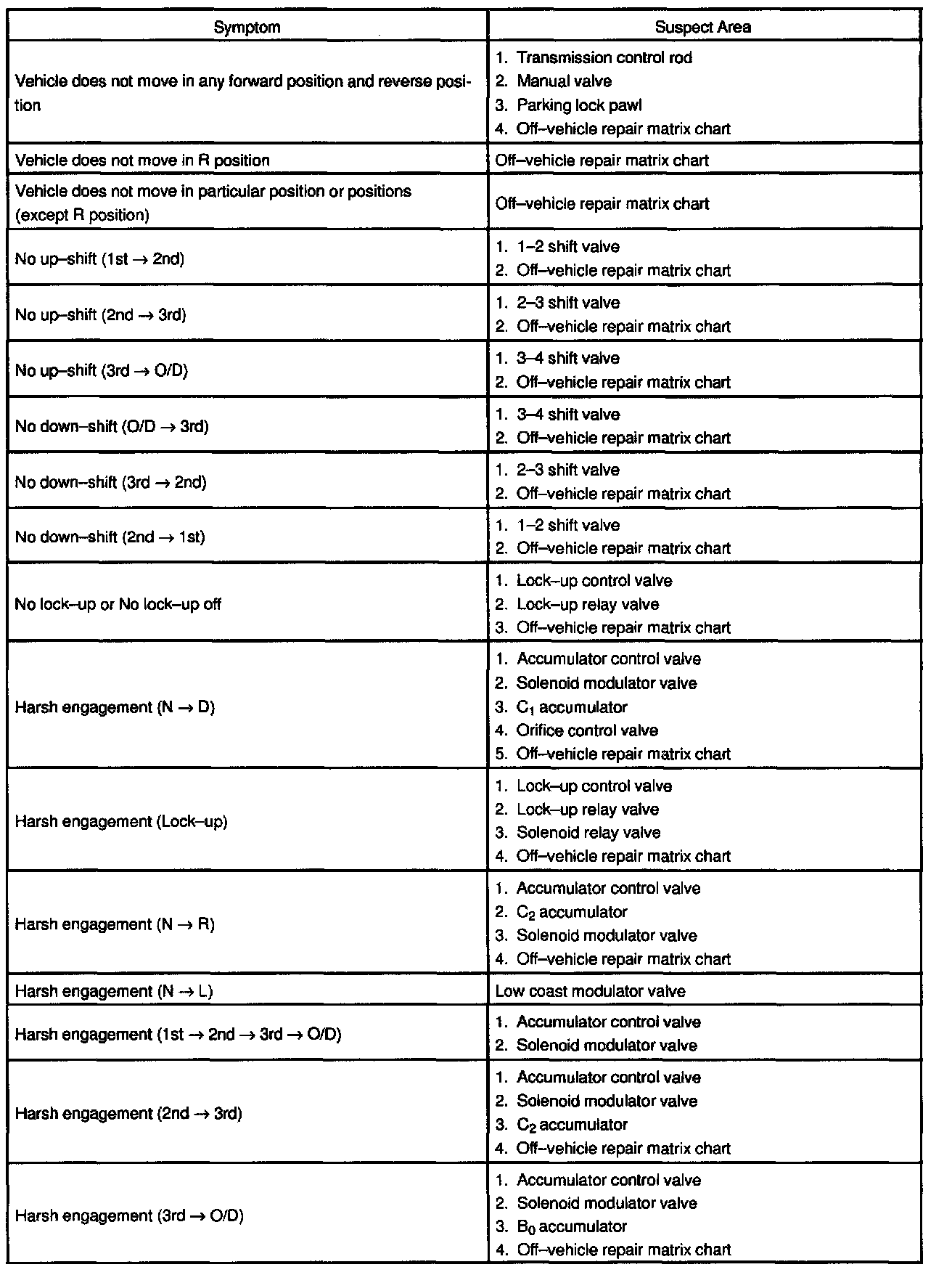 If a normal code is displayed during the diagnostic trouble code check but the trouble still occurs, check the circuits for each symptom in the order given in the charts and proceed for troubleshooting.The Matrix Chart is divided into 3 charts.