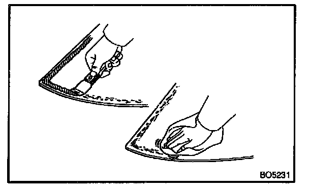 Using a brush, coat Primer M to the exposed part of door panel on the vehicle side.