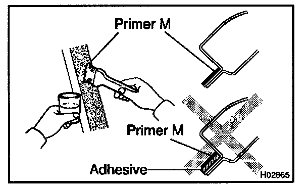 a. Using a brush or sponge, coat the edge of the glass and contact surface with Primer G.