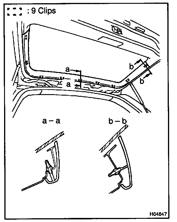 Install a new back window moulding as shown in the illustration.
