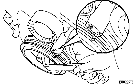 a) Turn the crankshaft pulley, and align its groove with timing mark 0 of the timing chain cover.