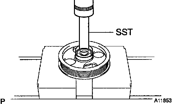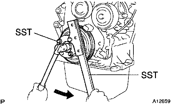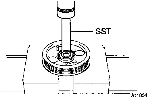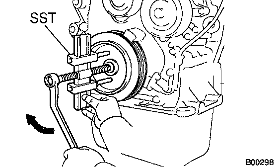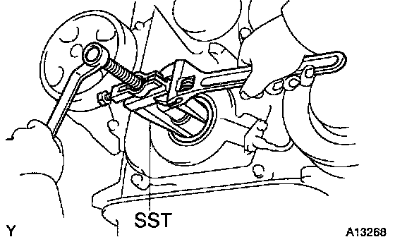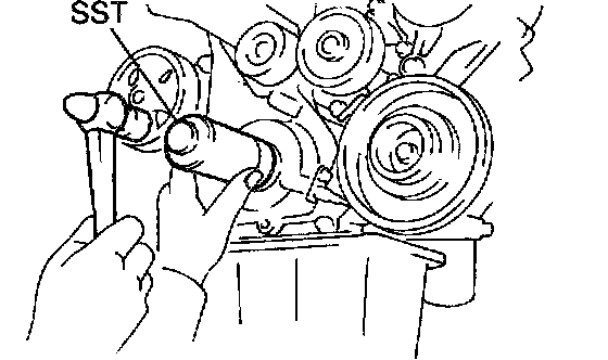 HINT: If necessary, remove the pulley with SST.