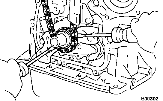 If necessary, pry between the timing chain and oil pump by 2 screwdrivers.