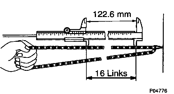 If the elongation is greater than maximum, replace the chain.