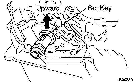 a) Turn the crankshaft pulley, and align its groove with the timing mark 0 of the timing chain cover.