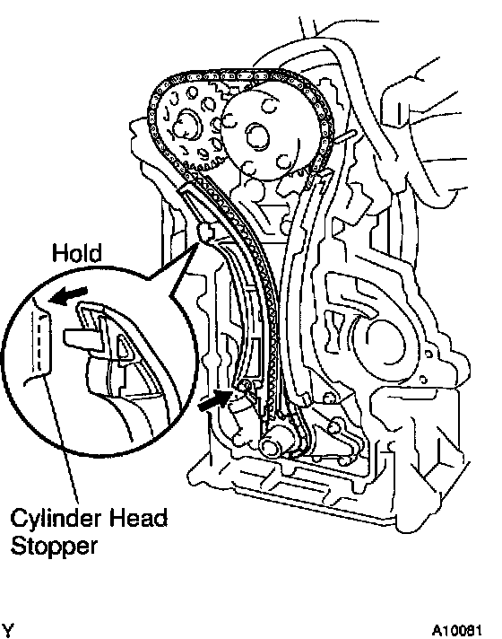 b) Check that the slipper is held on the cylinder head stopper.