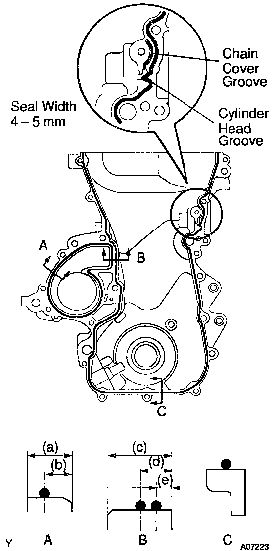 b) Apply seal packing to the timing chain cover as shown in the illustration.