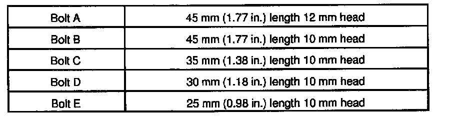HINT: Each bolt length in indicated in the illustration.