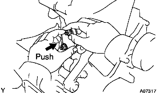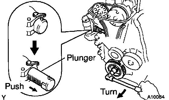 HINT: If the plunger does not spring out, press the slipper into the chain tensioner with a screwdriver or your finger so that the hook is released from the knock pin and the plunger springs out.