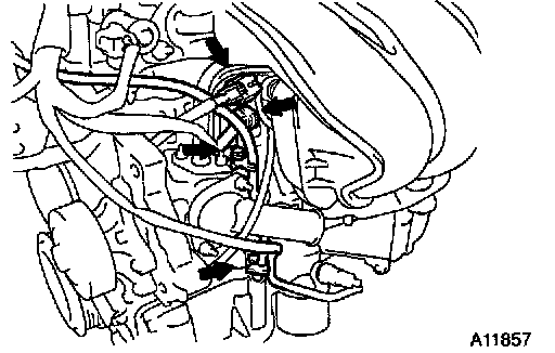 Remove the 3 bolts and engine mounting bracket.