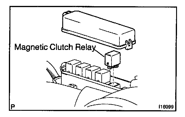 2. REMOVE MAGNETIC CLUTCH RELAY (Marking: A/C COMP) FROM ENGINE ROOM R/B