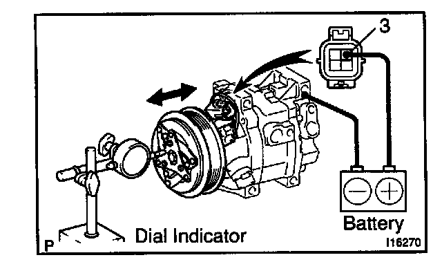 a. Set the dial indicator to the pressure plate of the magnetic clutch.
