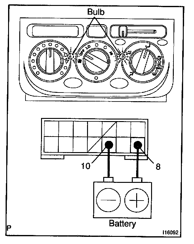 b. Connect the positive (+) lead from battery to terminal 8 and then check that the indicator dims.