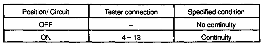 Using an ohmmeter, apply the tester as shown in the illustration to the test for continuity.
