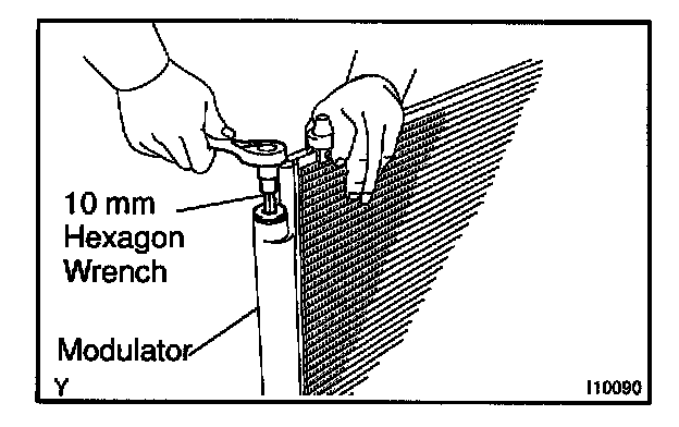 a. Using a 10 mm hexagon wrench, remove the cap from the modulator.