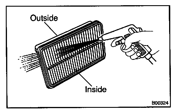 b. Clean the air filter with compressed air.