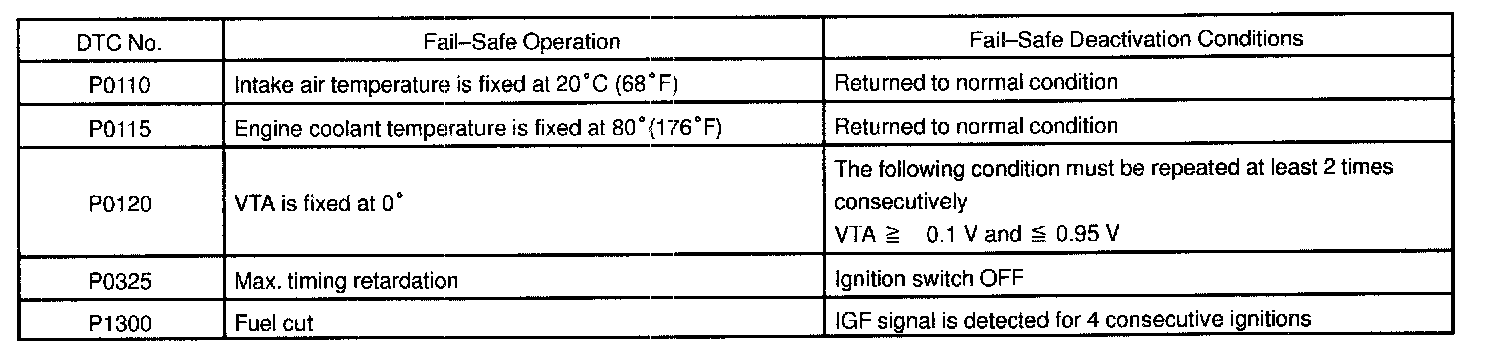 If any of the following codes is recorded, the ECM enters fail-safe mode.