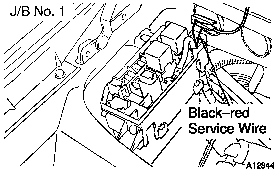 Connect the tester probe of a timing light to the black-red service wire in the J/B No. 1 as shown in the illustration.