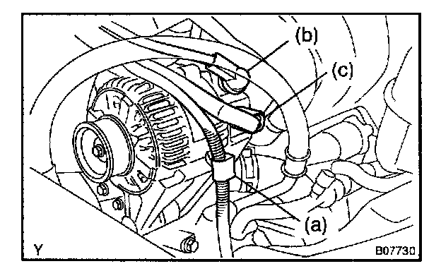 b. Remove the cap and nut, and disconnect the generator wire.