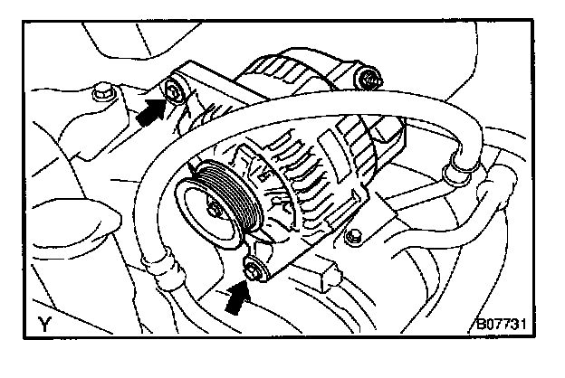 d. Remove the 2 bolts and generator.