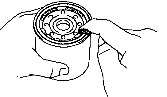 d. Lightly tighten the oil filter by hand until the rubber gasket contacts the seat of the filter mounting.