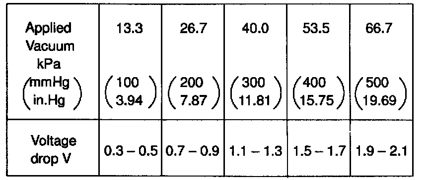 d. Apply vacuum to the MAP sensor in 13.3 kPa (100 mmHg, 3.94 in.Hg) segments to 66.7 kPa (500 mmHg, 19.69 in.Hg).