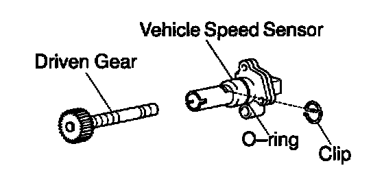 c. Remove the clip and speedometer driven gear from the vehicle speed sensor.
