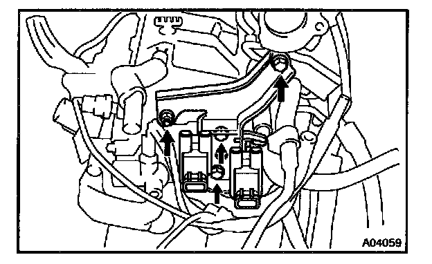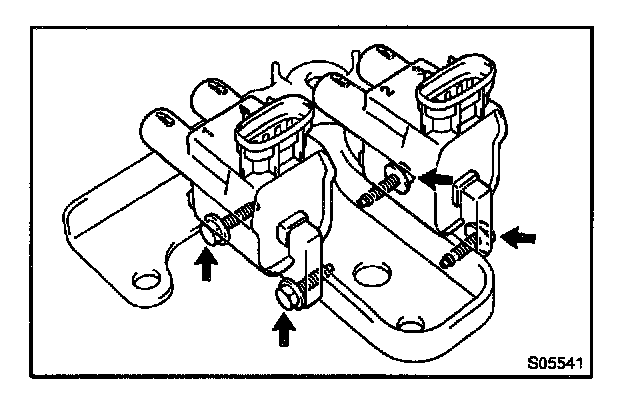 a. Install the 2 ignition coils and manifold stay assembly with the 2 nuts and 2 bolts.