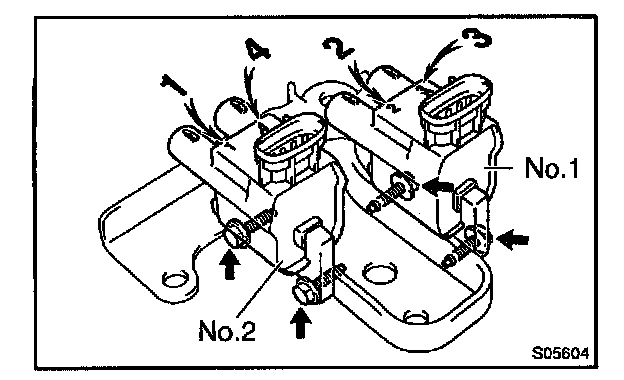 NOTE: The installation positions of the ignition coils are different for No.1 and No.2