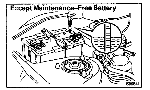2. EXCEPT MAINTENANCE-FREE BATTERY: CHECK BATTERY SPECIFIC GRAVITY