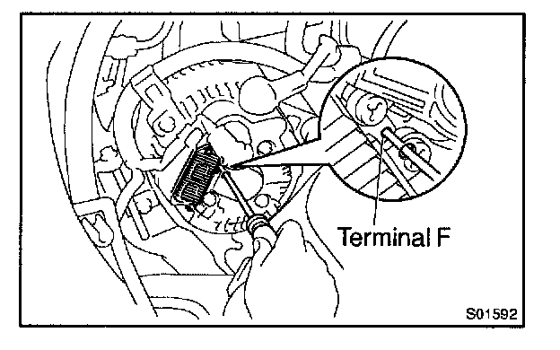 - With terminal F grounded, start the engine and check the voltmeter reading of terminal B.