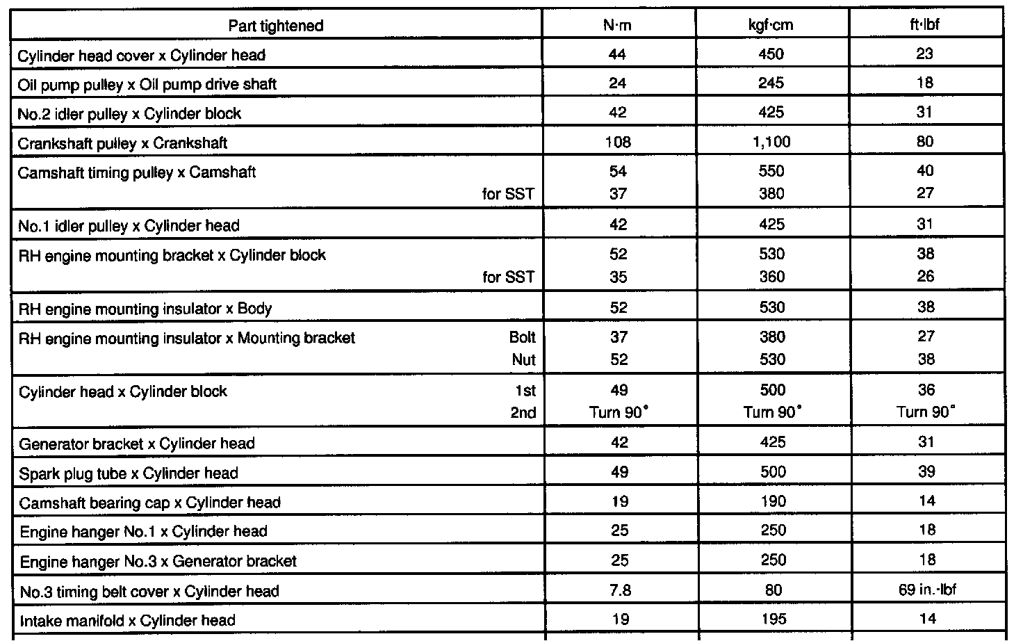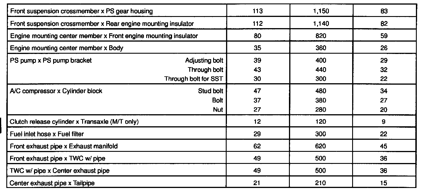 3S-FE Engine Mechanical Torque: