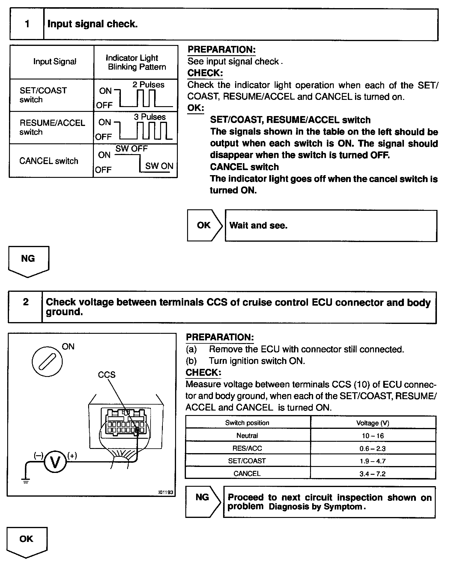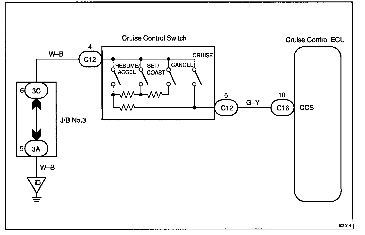 This circuit carries the SET/COAST RESUME/ACCEL and CANCEL signals (each voltage) to the ECU.