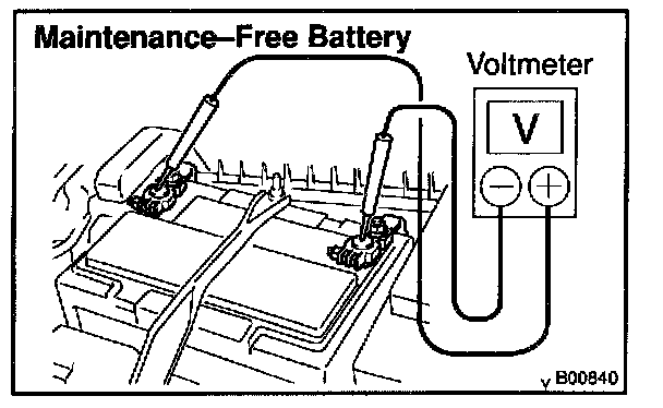 If the voltage is less than specification, charge the battery.