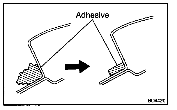 Apply adhesive to the moulding installation area between the glass and the body.