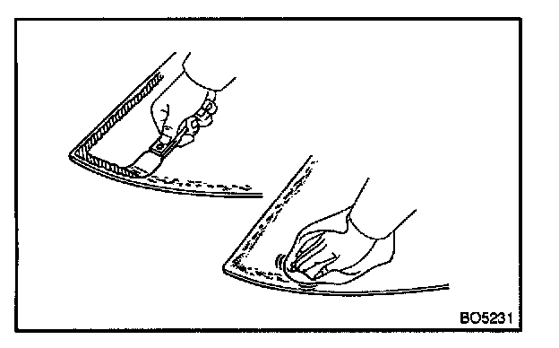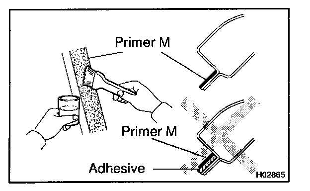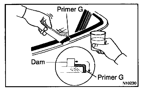 a. Using a brush or a sponge, coat the edge of the glass and the contact surface with primer G.