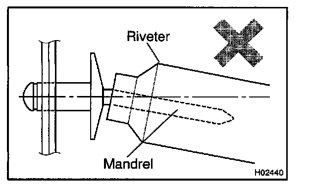 - Do not prize a riveter, as riveter is damaged, it is not tightened and the mandrel is bent.